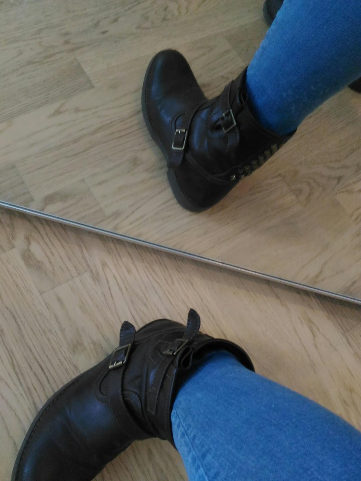 Ho aggiunto dei jeggings (di Gap) e un vecchio paio di stivaletti.