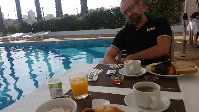Hotel Alcaide: situato a Praia du Vao, zona più modesta e familiare dell'iper turistica e super affollata Praia da Rocha, questo albergo a due stelle ne meriterebbe ben di più: sebbene la struttura risalga a gli anni '80, gli spazi comuni e la facciata sono stati recentemente rimodernati e si vede, perché sia io che Max siamo rimasti piacevolmente colpiti dalle pareti bianche, l'arredamento moderno e soprattutto dalla bella piscina a disposizione degli ospiti fino alle nove di sera. La colazione abbondante è servita a bordo piscina e le camere sono dotate di tapparelle elettriche; decisamente un fattore di pregio, visto che normalmente gli hotel di tutto il mondo si limitano a delle semplici tende oscuranti (che alla fine non oscurano un bel niente). L'arredamento delle camere è invece un po' datato, con mobili in legno semplici e robusti e piastrelle vecchiotte (la struttura sta però chiaramente rimodernando anche questo aspetto, probabilmente sfruttando i mesi di chiusura invernale). Unica pecca la carenza di prese elettriche, problema estremamente diffuso in qualsiasi albergo del mondo purtroppo. Le camere sono dotate di cassaforte, per cui però è stato necessario pagare un extra, e in bagno non troverete l'asciugacapelli (basterà chiederlo alla reception che ve lo darà gratuitamente). Il personale è davvero molto gentile e disponibile, ed è impossibile non socializzare.